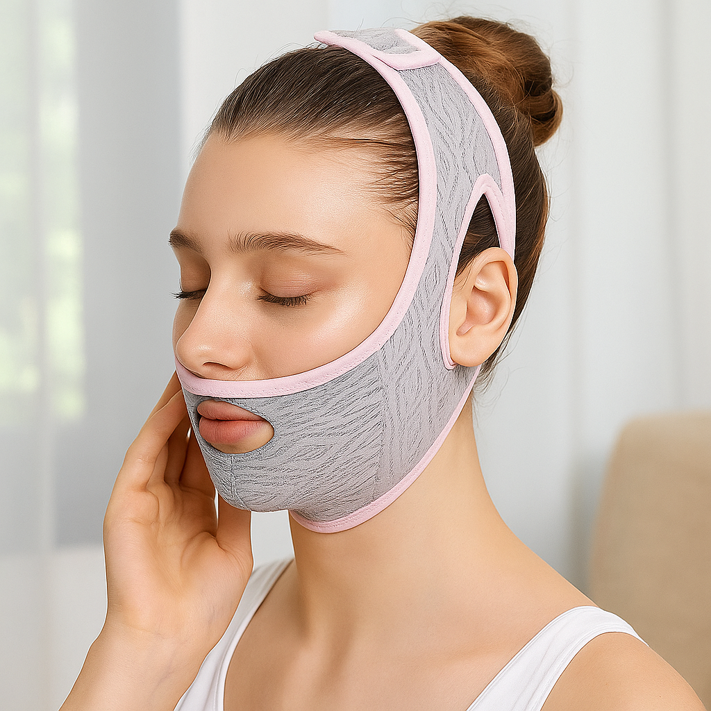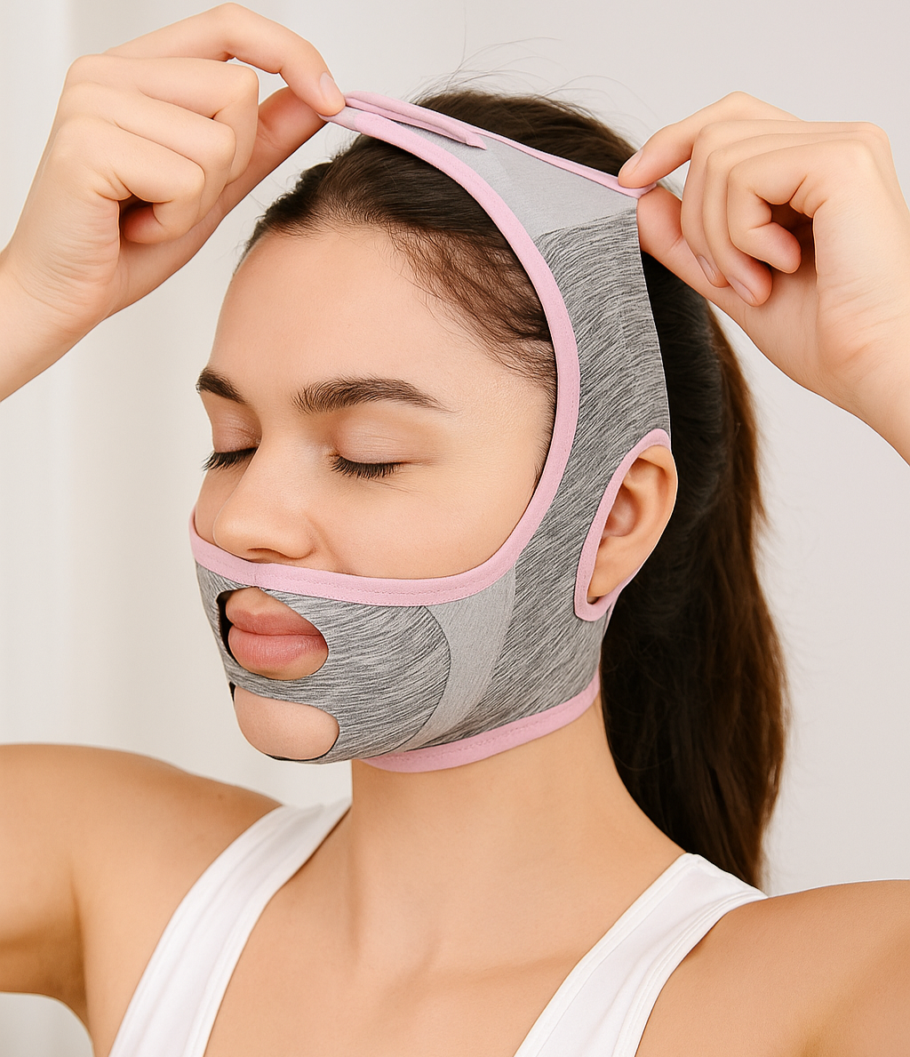 Made from soft, stretchy fabric, it acts like a compression headband to tone skin, improve facial contours, and visibly reduce sagging. Wear comfortably at home for a few minutes a day.